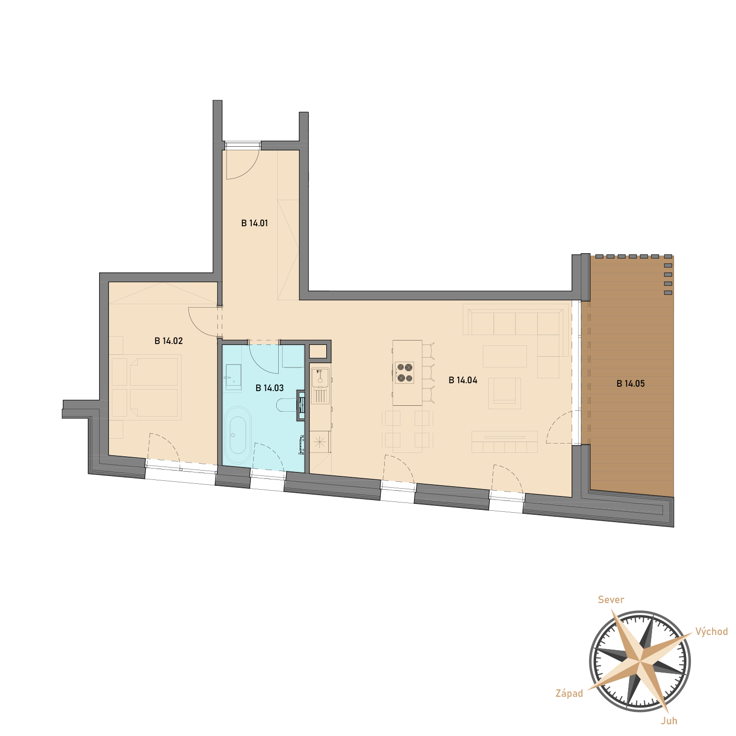 B 14.04 - Kuchyňa + obývačka 35,80 m²